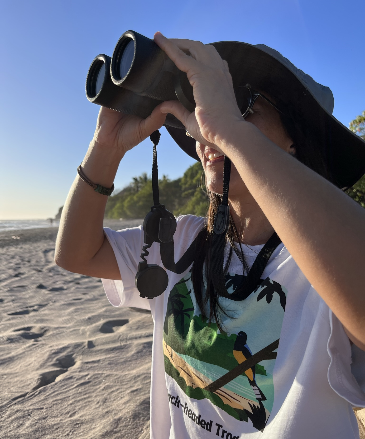 This design is inspired by the beaches of our habitat on the Nicoya Peninsula, and of course by the Trogon visiting our backyard every morning. It’s impossible not to love the nine species of Trogons that occur in Costa Rica, and the Black-Headed Trogon holds a special place in our hearts. Show your love for birds and get a t-shirt of this beautiful bird!